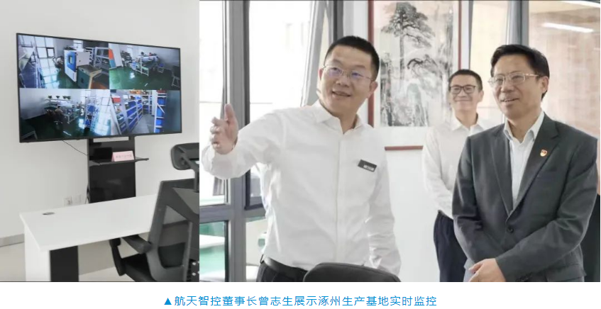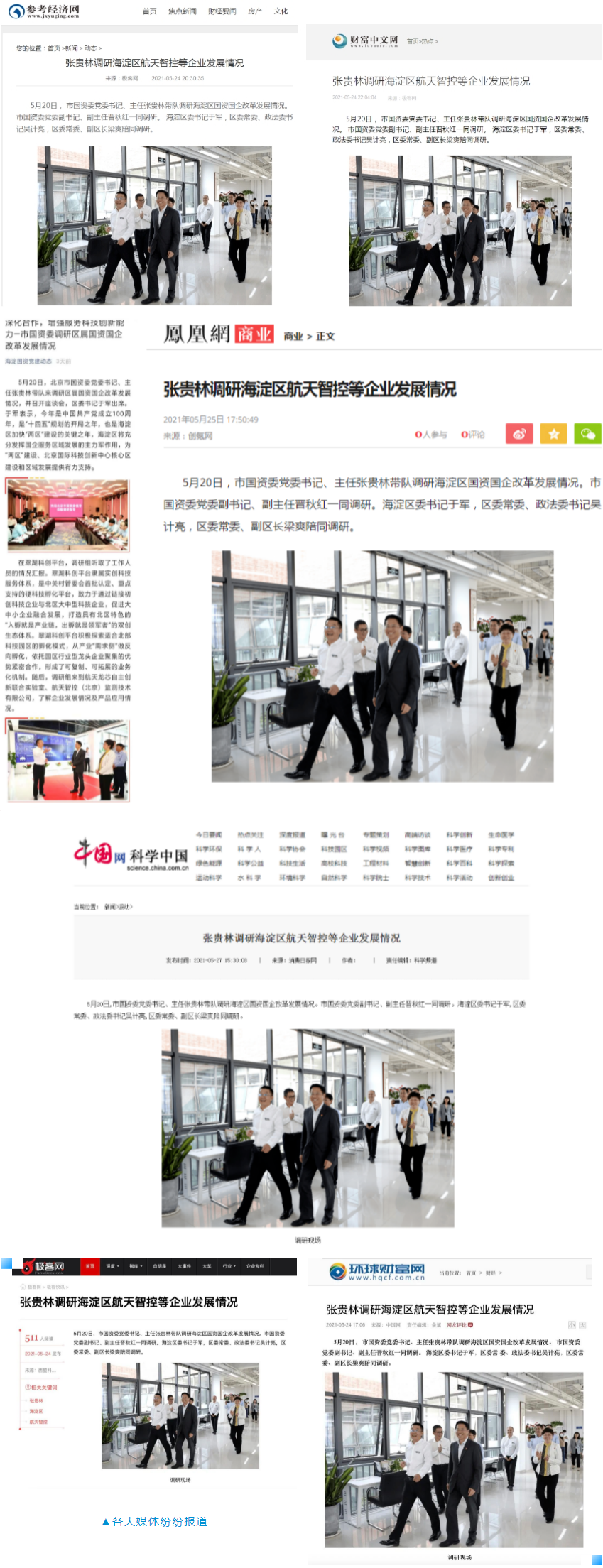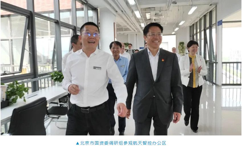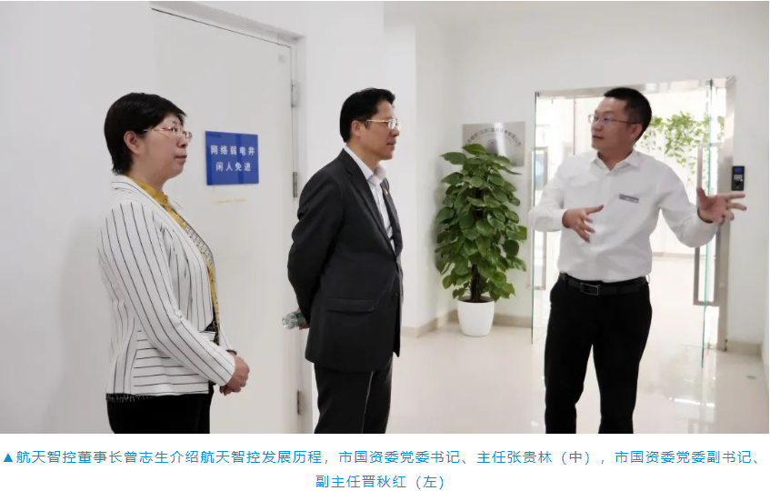 2021年5月20日,市国资委党委书记、主任张贵林带队调研海淀区国资国企改革发展情况。市国资委党委副书记、副主任晋秋红一同调研。海淀区委书记于军,区委常委、政法委书记吴计亮,区委常委、副区长梁爽陪同调研。调研组莅临海淀区翠湖科创平台参观航天智控办公区,航天智控董事长曾志生就企业发展情况及产品应用情况等做了详细汇报,市国资委党委书记、主任张贵林、副主任晋秋红认真听取了曾志生的汇报,给予航天智控非常高的肯定。