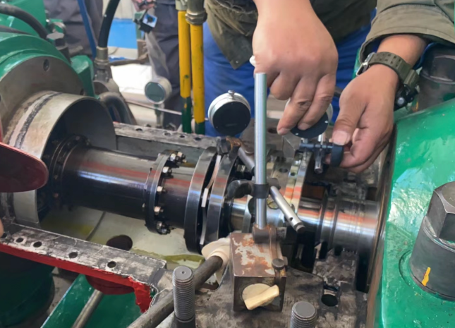 实际测量联轴器间隙,对联轴节进行对中测量,并进行微调。