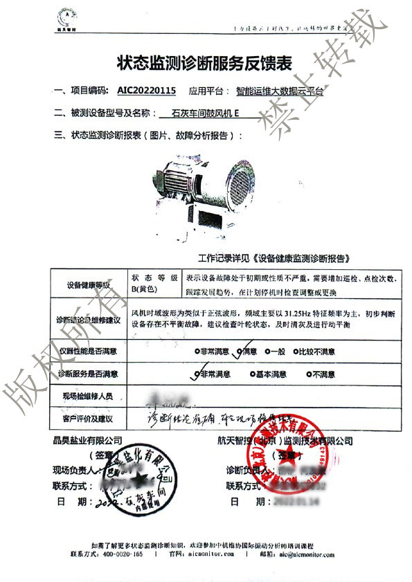 晶昊盐化的核心设备包括:二氧化碳压缩机、精盐水泵、鼓风机、引风机等,状态监测系统在设备故障报警之后可准确定位到故障零部件并精准判断故障类型,主要优势如下: