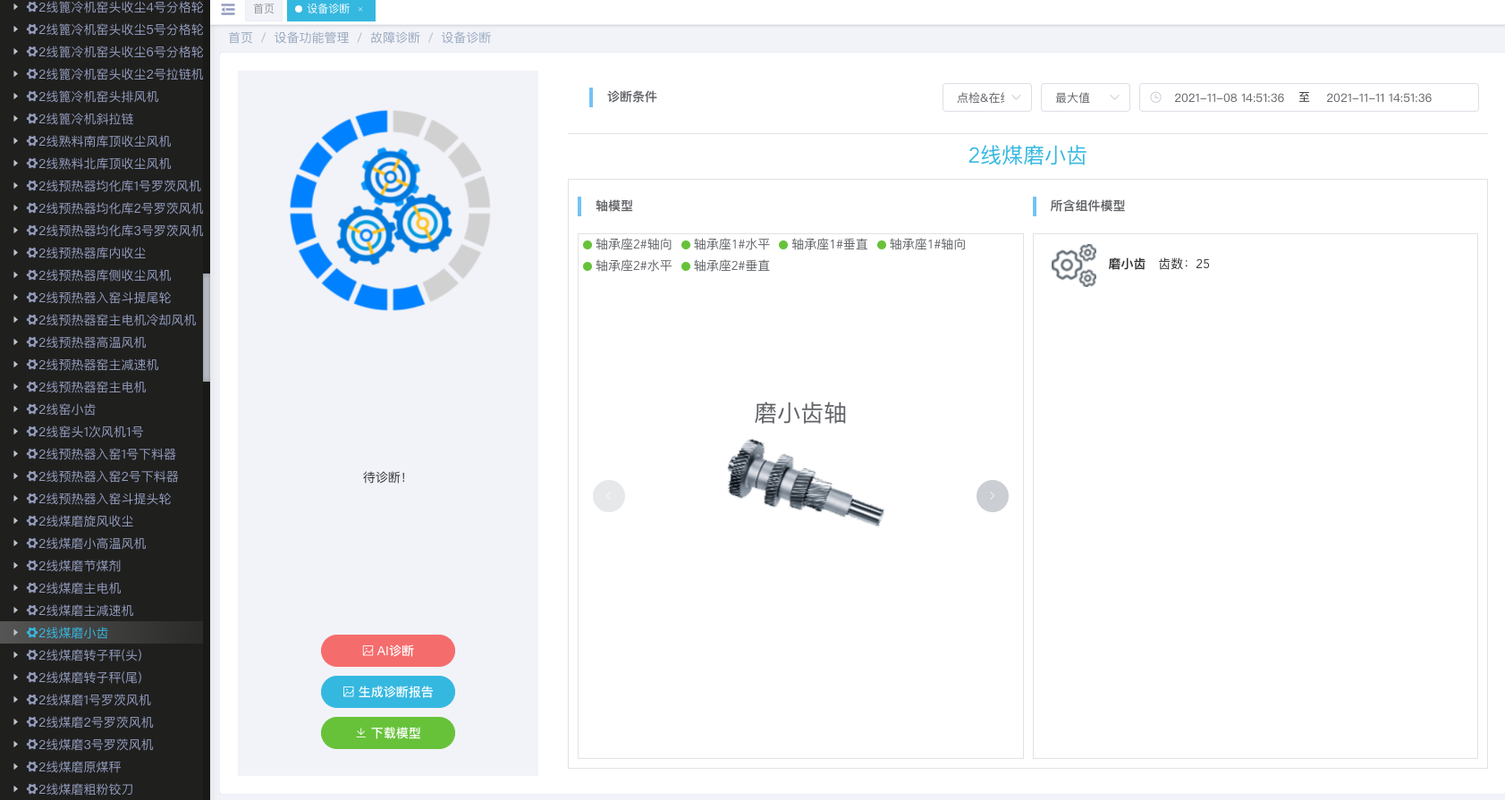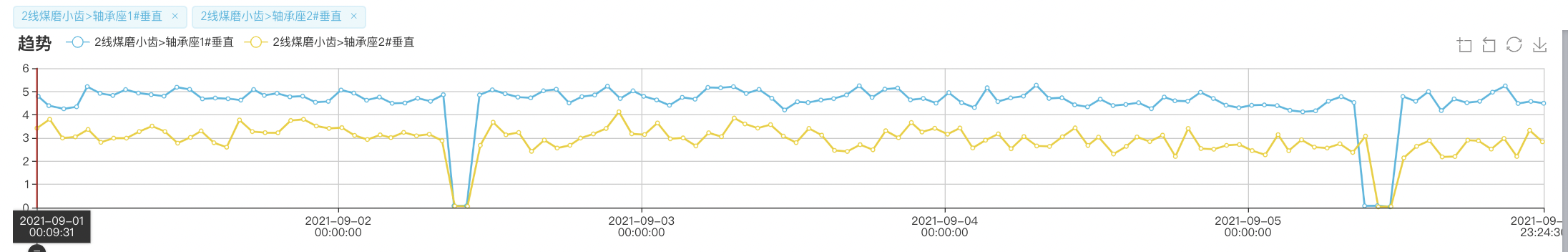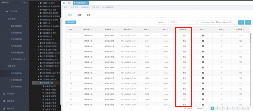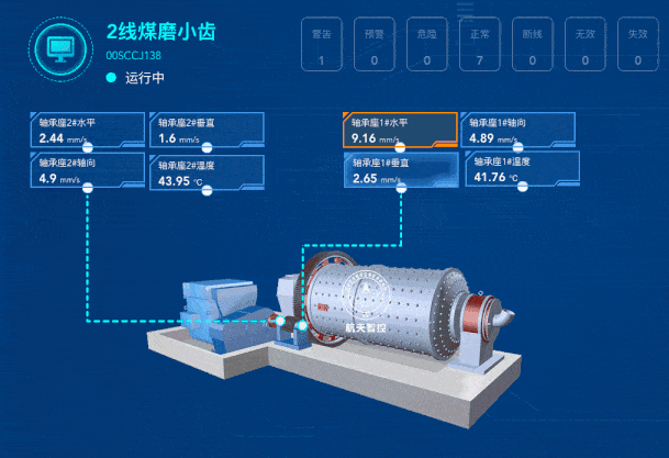 2线煤磨小齿的振动值超标,设备一直处于报警阶段,监测数值如下:
