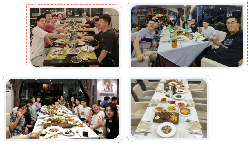 紧张的工作会议结束后,航天智控为大家准备了聚餐活动,感谢艰苦奋战、敬业付出的员工。航天智控人觥筹交错、把酒言欢,共同祝愿航天智控乘风破浪、再创辉煌!