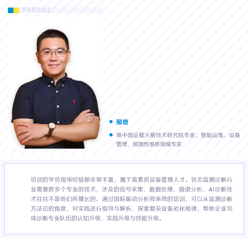 本期培训由中机维协国际振动分析师培训基地的专家邴奇、曾松、张壮壮主讲。培训坚持理论与实践相结合,案例详实,深入浅出,让振动原理和故障机理不再晦涩难懂。