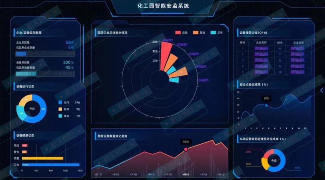 山东某化工园区引进航天智控智能运维大数据云平台对危化品企业开展全方位的安全技术服务,重点监管、审核园区的企业设备故障安全标准、点检作业标准、检维修作业标准及设备故障预测性报警等重点环节,获得效果如下: