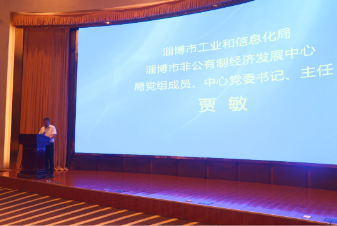 ▲淄博市工业和信息化局党组成员、市非公有制经济发展中心党委书记、主任贾敏致辞