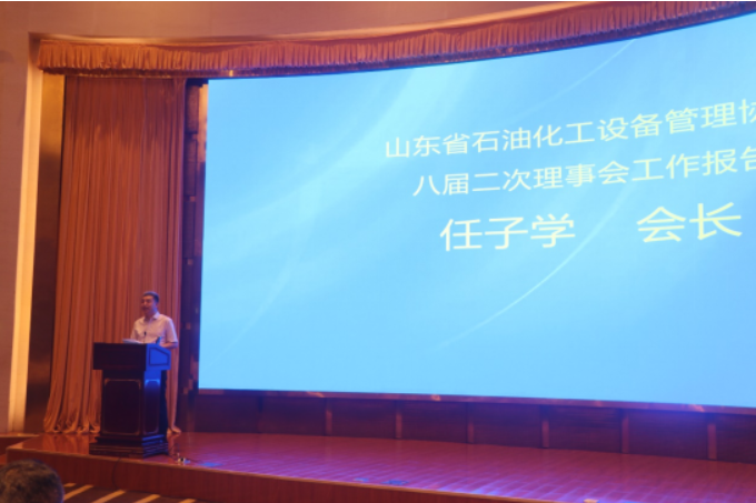 ▲山东省石油化工设备管理协会任子学会长作八届二次理事会工作报告