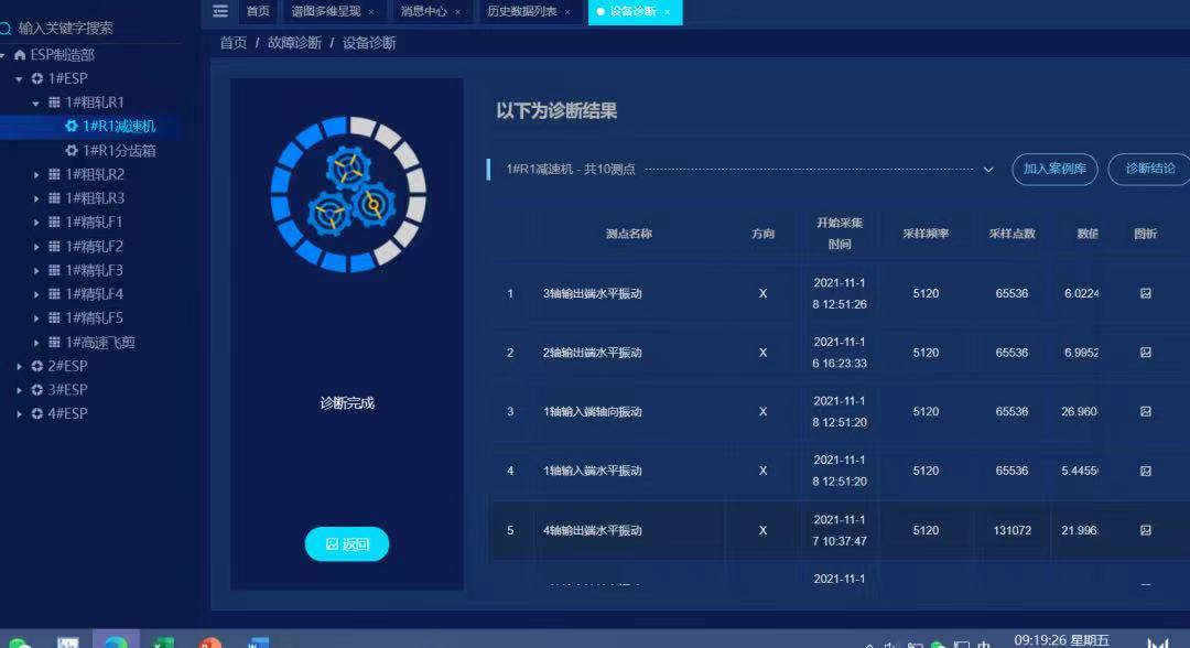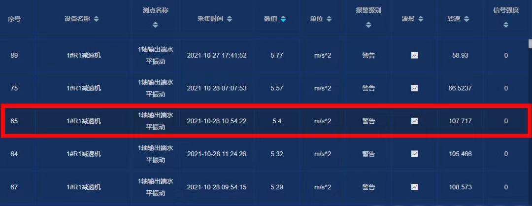 1#ESP粗轧R1减速机振动值超标,设备一直处于报警阶段,监测数值如下:
