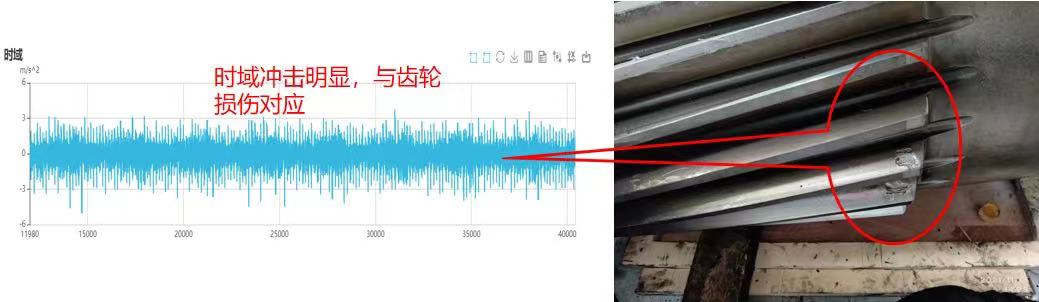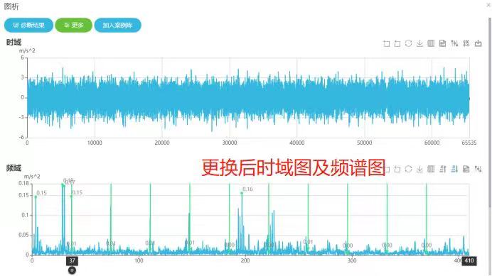 时域波形及频谱较维修之前相比明显的异常冲击消失,减速机运行正常。
