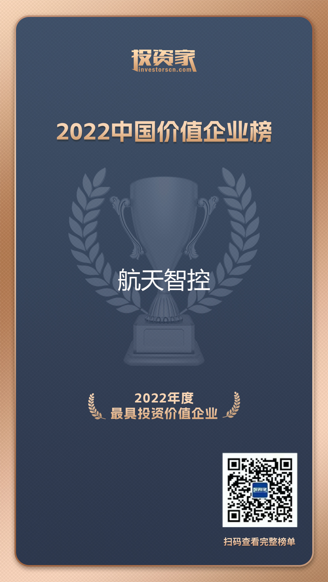 1月12日,由投资家网旗下投资家研究院发起的“投资家网·2022中国价值企业榜”隆重发布,航天智控凭借在工业互联网领域的创新实力入选“2022最具投资价值企业TOP100”,一举实现新年开门红。