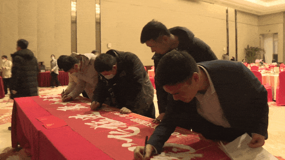 航天智控人满怀欣喜迎接一场团圆相聚,下午5点30分,陆续来到会场。大家在印有本次年会主题的条幅上签下自己的名字,写下新年愿望,投入抽奖箱,还领取了航天智控董事长曾志生亲自发放的新年红包,现场气氛逐渐热烈。