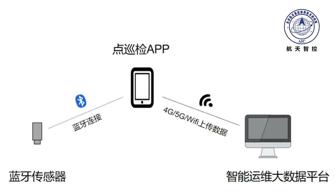 防爆手机通过蓝牙连接传感器,进行测量设备的振动、温度及转速,测量完成后,通过WIFI或4G/5G网络将巡检数据上传至智能运维大数据平台。