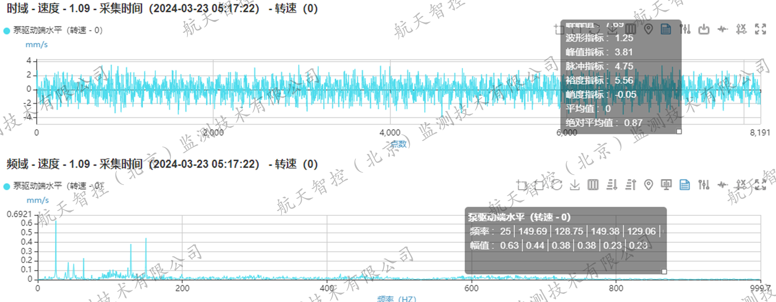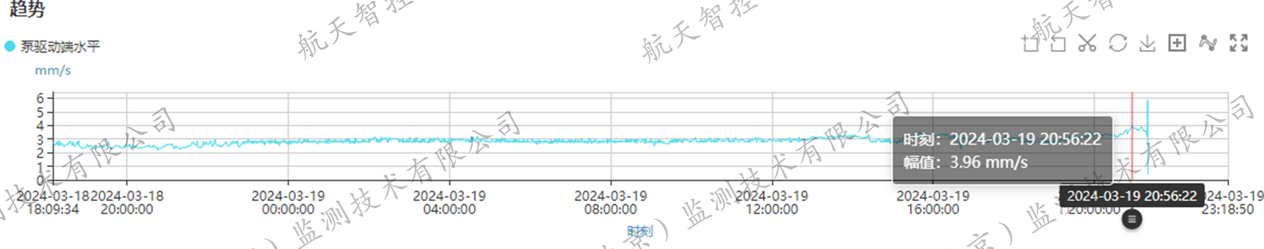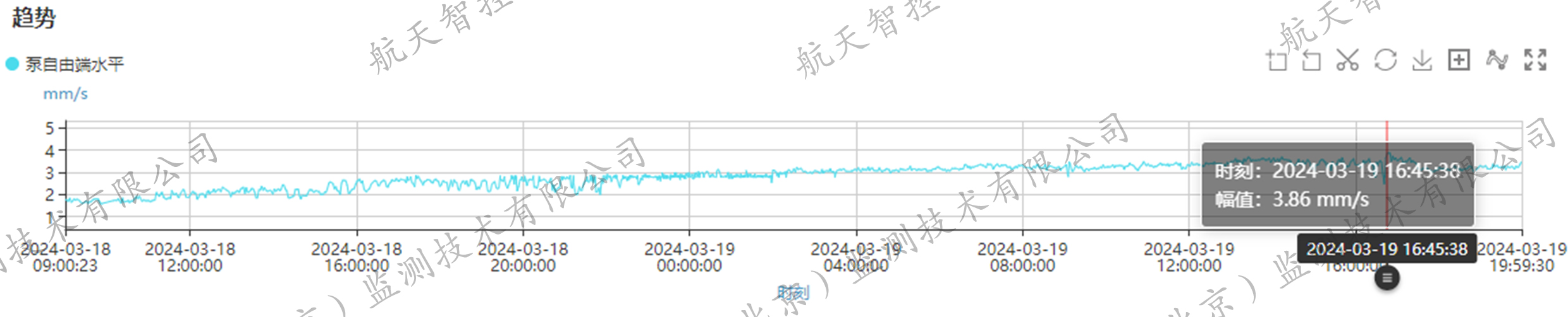 3月19日22点,系统实时监测到异常信号并智能报警:循环氨水泵驱动端水平、垂直测点振动值分别骤升至3.76mm/s和3.64mm/s,且频谱中底噪明显抬升。这一变化也立即引起了航天智控诊断工程师的注意,他们迅速在客户微信群中发出预警通知。
