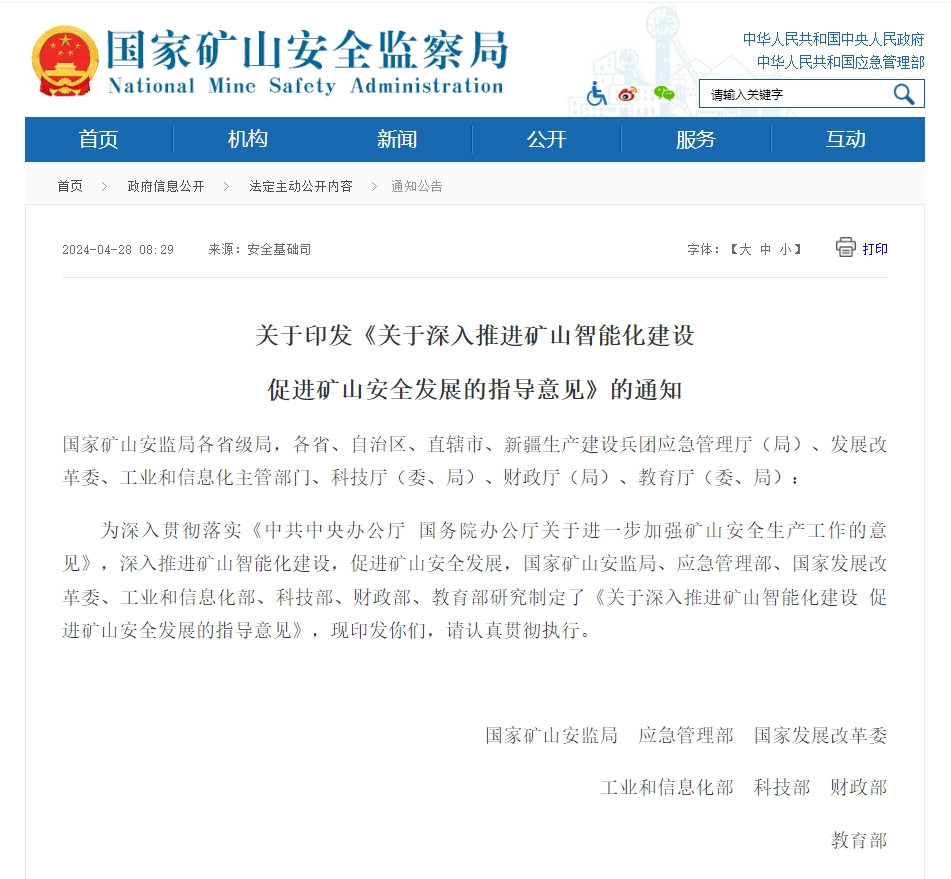 关于深入推进矿山智能化建设促进矿山安全发展的指导意见