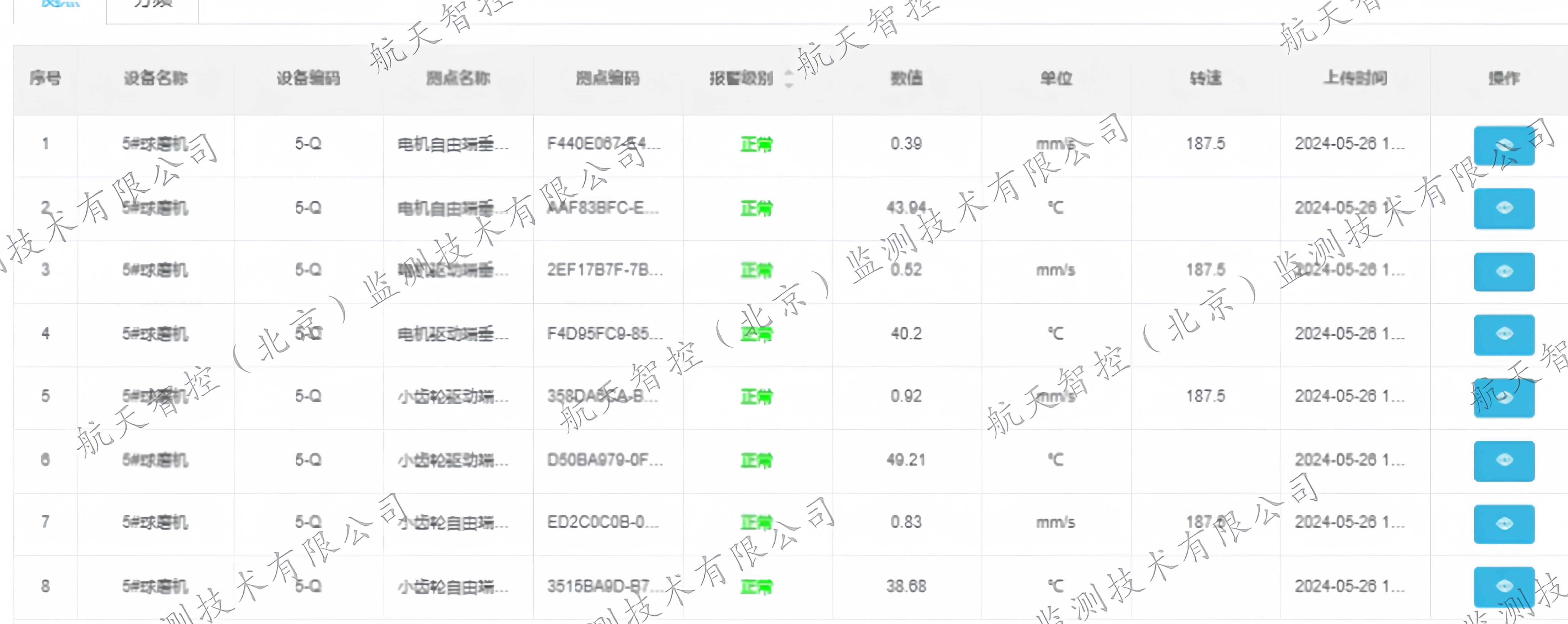 ▲在线监测:5#球磨机设备监测画面
