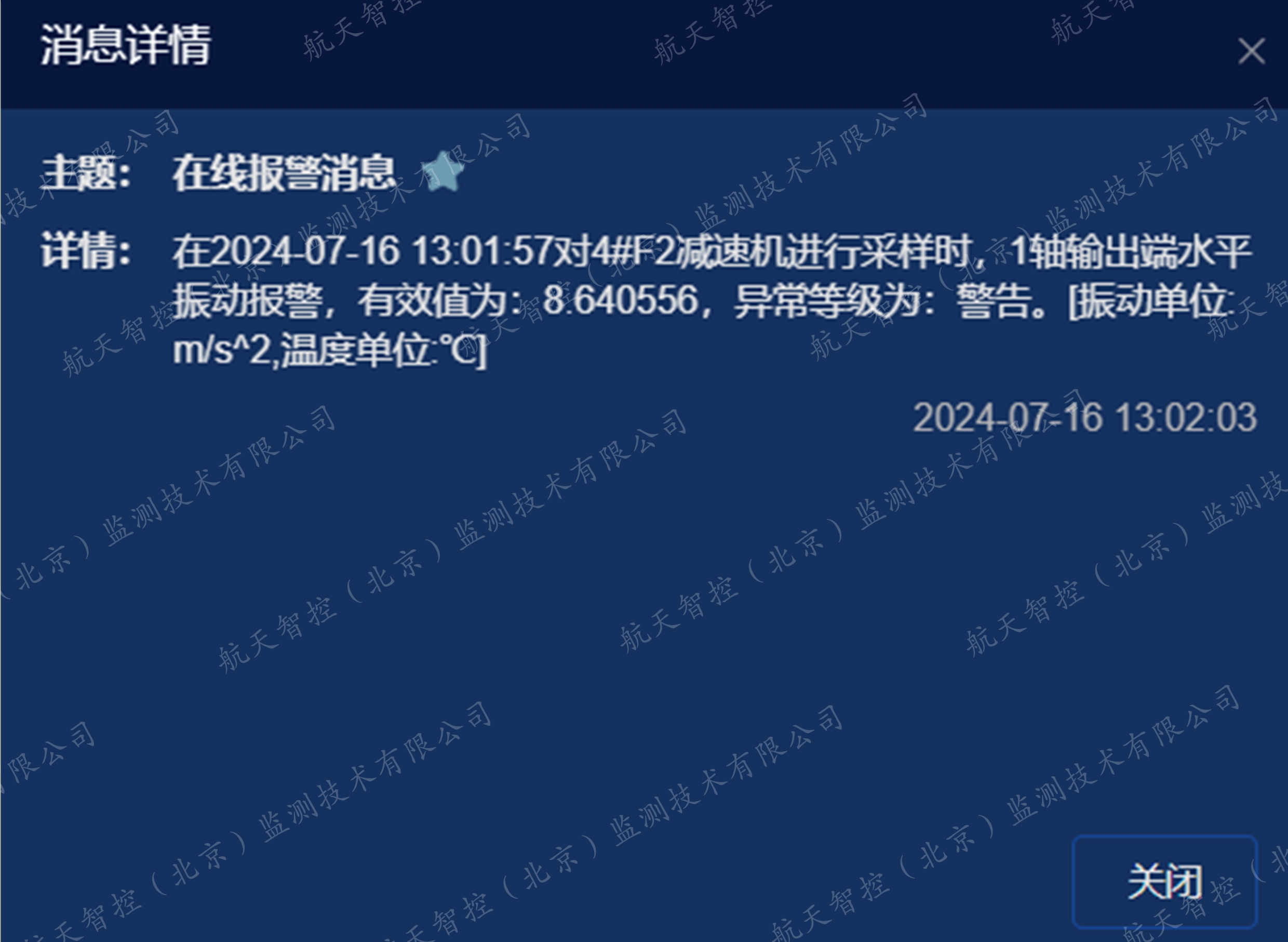 7月16日下午约13:00,精轧减速机出现异常波动,航天智控的智能运维系统凭借敏锐的“触觉”,第一时间捕捉到了这一细微变化。系统监测显示,精轧减速机各轴振动值开始出现上升,尤其是其一轴及二轴输出端较为明显,振动值最高上升至12m/s2左右,达到警告级别,瞬间触发智能报警。