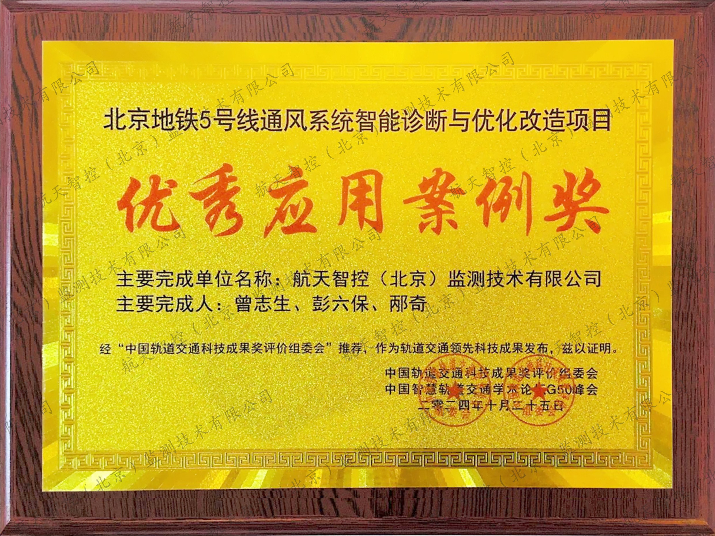 此次论坛特设2024轨道交通科技成果奖,航天智控的《北京地铁5号线通风系统智能诊断与优化改造项目》,经过评审组专家从创新水平、技术难度、经济效益、社会贡献、完备程度等多个维度层层筛选,最终斩获“优秀应用案例奖”,这是对公司技术创新能力的充分肯定,也为行业发展提供了宝贵的经验和借鉴。