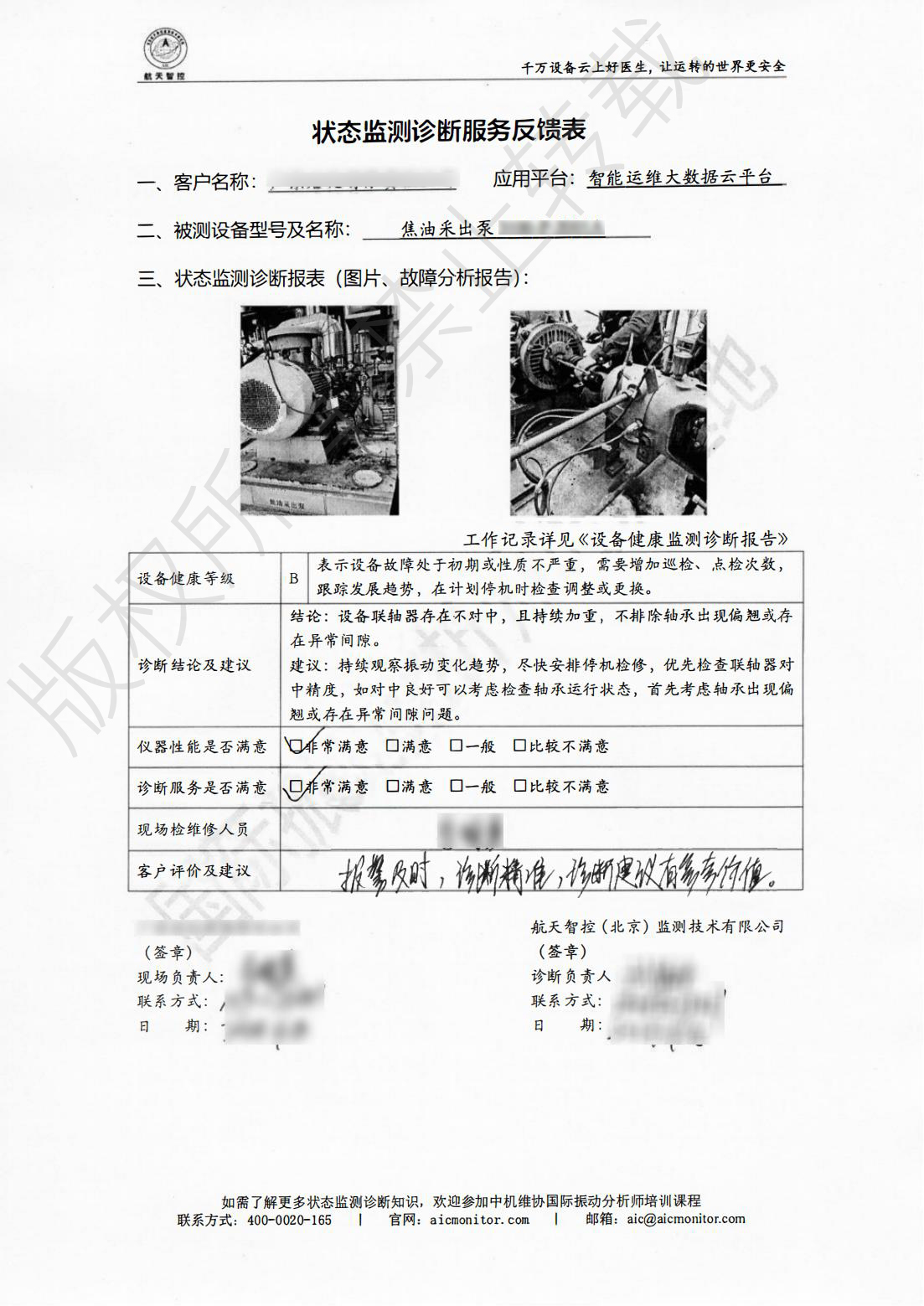 现场检修人员迅速行动,按照建议检查了焦油采出泵联轴器的对中精度,果然发现存在偏差,印证了诊断结论,随后立即对联轴器进行了重新校准。