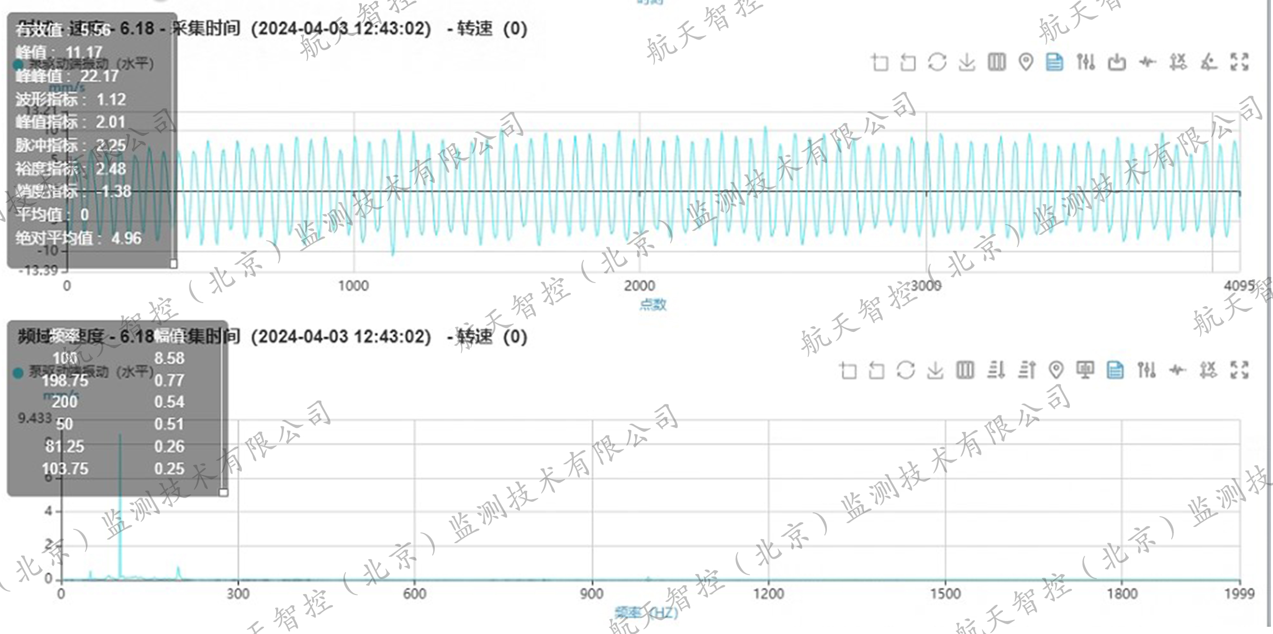 航天智控智能诊断团队即刻响应,利用设备故障知识图谱、故障机理分析等先进技术,对振动数据进行了深度剖析,发现联轴器两侧振动存在增大趋势,在此期间二倍频成分越来越明显,幅值逐渐攀升,4月初时频谱上基本二倍频占主要成分,速度时域波形近似正弦波。这一系列发现,为精准定位故障源头、制定有效解决方案奠定了坚实的基础。