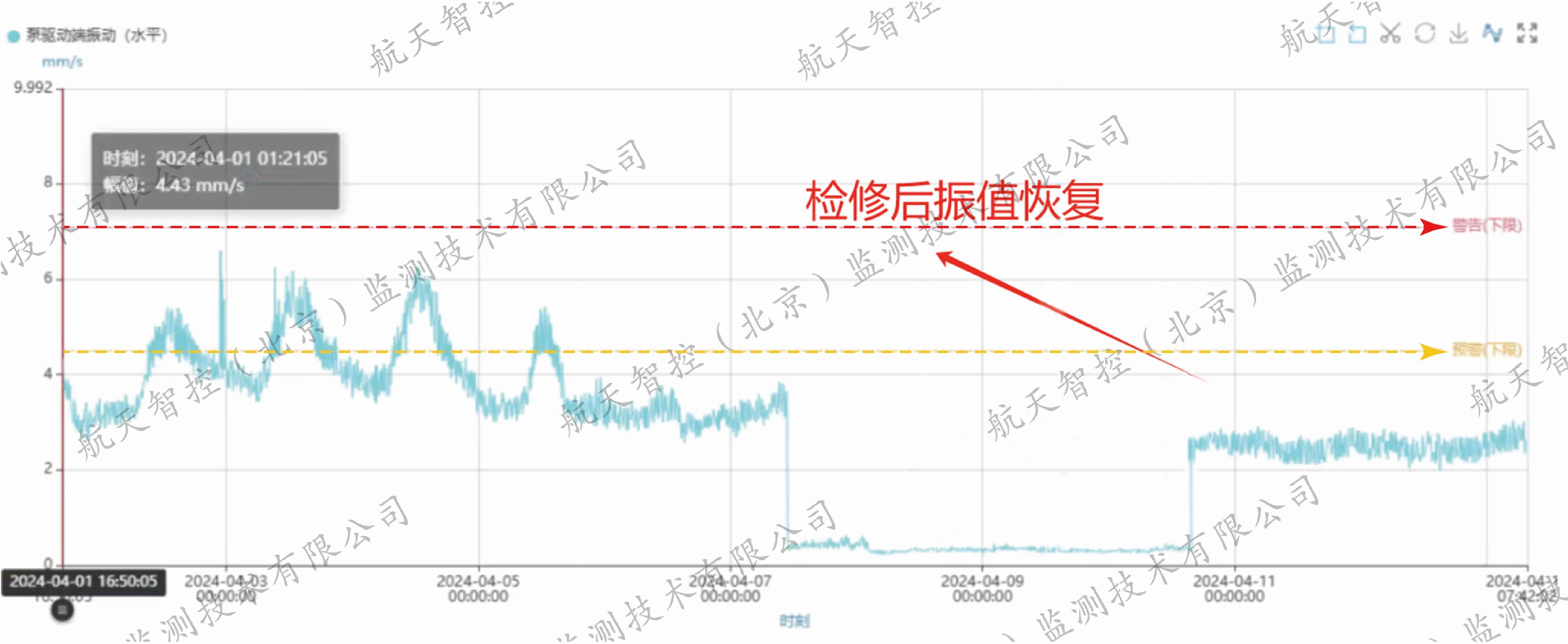 某大型石化企业把握数字化、绿色化、智能化融合发展的契机,以智能制造为主攻方向推动企业数字化转型,率先部署航天智控智能运维系统,对设备状态进行全天候“体检”,结合AI诊断与专家团队的深入分析,及时发现并解决潜在故障,确保设备长周期安全稳定运行。在系统上线不久,面对一起焦油采出泵的振动异常,精准“把脉”,化险为夷,展现出智能运维在设备管理领域的巨大潜力。