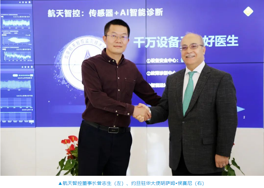 曾志生向约旦驻华大使胡萨姆?侯赛尼介绍了航天智控前沿产品的核心技术与行业解决方案:“当前中国政府对工业安全生产和降本增效极为重视,国家相应出台的一系列政策措施,提升了工业安全生产防护水平,保障了国家经济平稳发展?!痹旧硎?,“航天智控在响应国家号召的同时,专注于专业传感器和软件系统为一体的产品研发,让工业设备防患于未然,为工业企业的安全保驾护航。” 胡萨姆?侯赛尼认真听取了曾志生的汇报,对航天智控的发展以及先进的技术表示赞赏。胡萨姆?侯赛尼表示,“近年来约旦政府十分重视工业产业的发展,约旦目前有磷酸盐、钾盐、炼油、水泥、化肥5个规模较大的工业产业。我们非常期待航天智控的国际先进技术未来能够服务于约旦工业产业,加强约旦工业产业与航天智控的深度合作?!?/p>